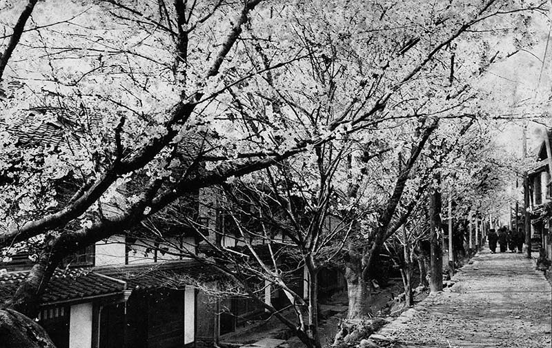 三次の桜は散ってしまいましたが、写真は100年ほど前の旭町の桜です。三次町の西城川沿いにあった町ですが、現在は堤防になっています。