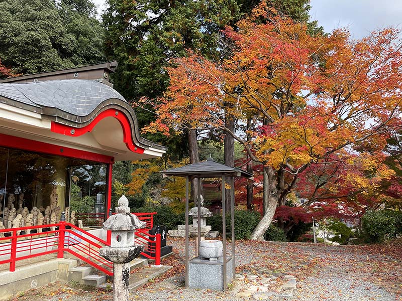 写真は、尾関山から国道を隔てた鳳源寺義士堂の紅葉です。