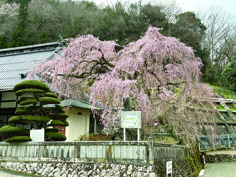庄原市西城町にある蓮照寺の枝垂桜(しだれざくら)は、10mの高さから地面近くまで花をつける優美な姿で知られています。5分咲き程度ですので、まだ来週も楽しめそうです。